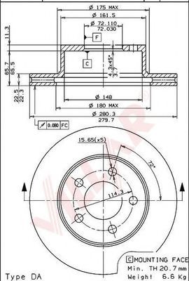 Толщина тормозного диска (мм) : 20,7