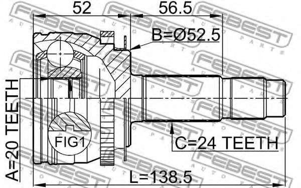 Внешнее зацепление со стороны колеса : 24Внутренне зубчатое соединение со стороны колеса : 20Диаметр прокладки [мм] : 52,5Длина [мм] : 136,5Приводной вал : с кольцом ABSСторона установки : со стороны колесаТип соединения / сочленения : Шарнир равных угловых скоростейЧисло зубцов кольца ABS : 48