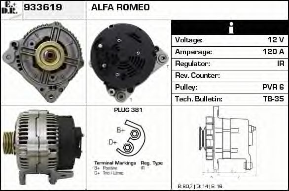 для артикула № : 209065 Напряжение [В] : 14 ток зарядки от генератора (А) : 120