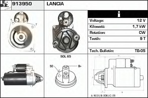 Мощность стартера [кВт] : 1,1 Напряжение [В] : 12