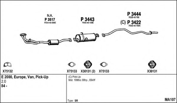 Глушитель в сборе для MAZDA BONGO автобус (SR1) E2000