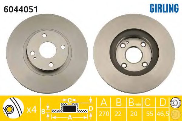 Толщина тормозного диска (мм) : 22