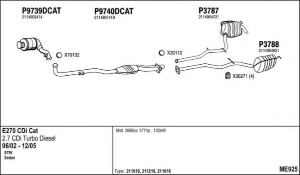 Глушитель в сборе для MERCEDES-BENZ E-CLASS T-Model (S211) E 270 T CDI (211.216)