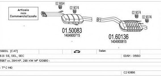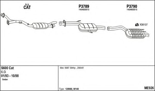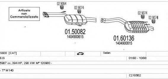 Глушитель в сборе для MERCEDES-BENZ S-CLASS (W140) S 600 (140.056, 140.057)