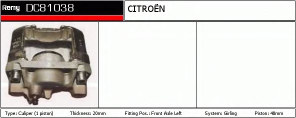 Тип тормозного суппорта : суппорт тормоза (1 поршень)