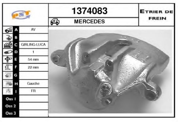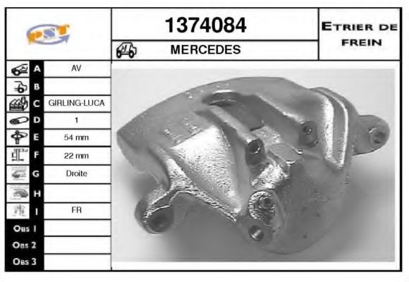 Тип тормозного суппорта : суппорт тормоза (1 поршень)