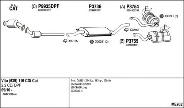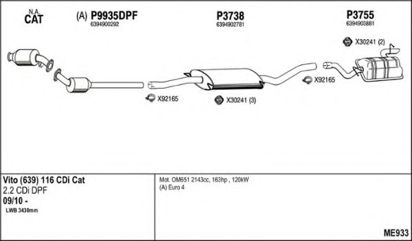 Глушитель в сборе для MERCEDES-BENZ VITO / MIXTO фургон (W639) 116 CDI 4x4