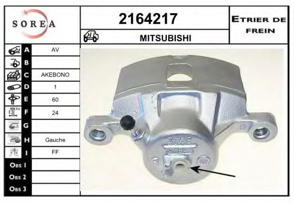 Тип тормозного суппорта : суппорт тормоза (1 поршень)