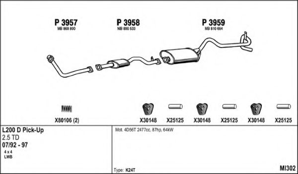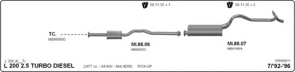 Глушитель в сборе для MITSUBISHI COLT/RODEO (K3_T, K2_T, K1_T, K0_T) 2.5 TD 4WD (K34T)
