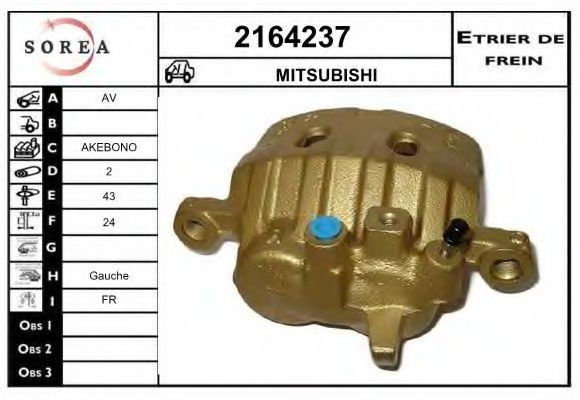 Тип тормозного суппорта : суппорт тормоза (1 поршень)