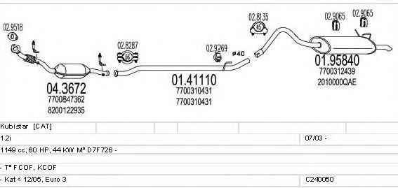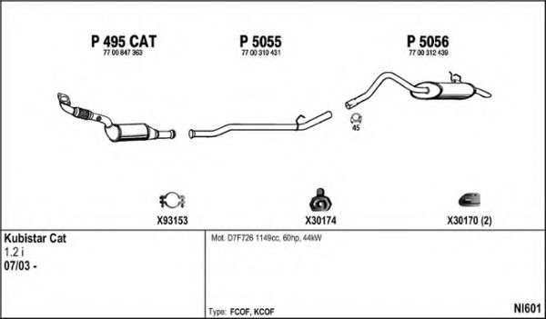 Глушитель в сборе для NISSAN KUBISTAR (X76) 1.2