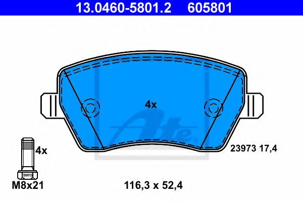 WVA номер : 23973Высота 1 [мм] : 52,5Датчик износа : без датчика износаНаружная ширина [мм] : 116,5Сторона установки : Передний мостТолщина [мм] : 17,3Тормозная система : TRW