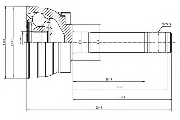 Внешнее зацепление со стороны колеса : 28Внутренне зубчатое соединение со стороны колеса : 27Диаметр прокладки [мм] : 50Сторона установки : со стороны колесаТип соединения / сочленения : Шарнир равных угловых скоростей