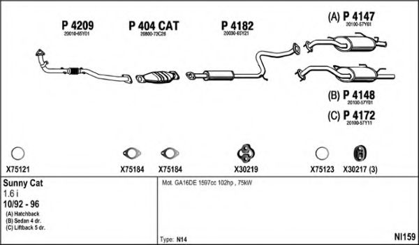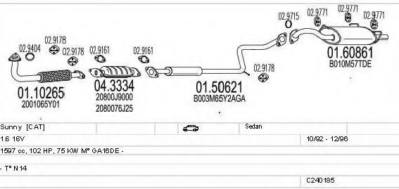 Глушитель в сборе для NISSAN PULSAR III (N14) 1.6 i 16V