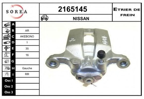 Тип тормозного суппорта : суппорт тормоза (1 поршень)