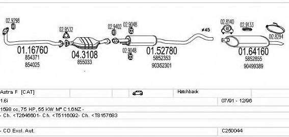 Глушитель в сборе для OPEL ASTRA F Наклонная задняя часть (53_, 54_, 58_, 59_) 1.6 i