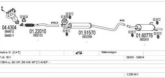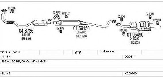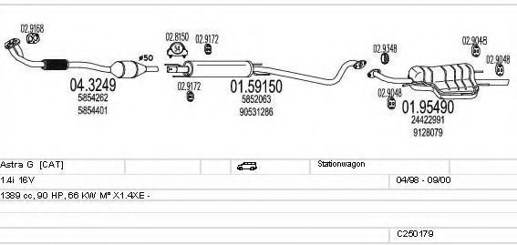 Глушитель в сборе для OPEL ASTRA G универсал (F35_) 1.4 16V