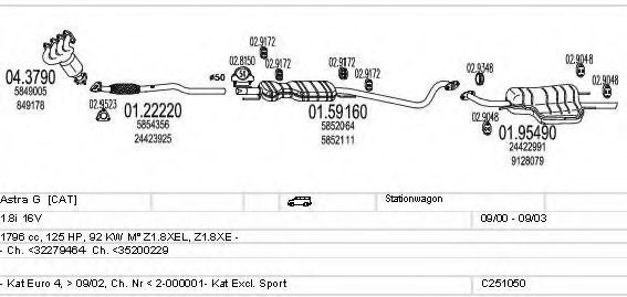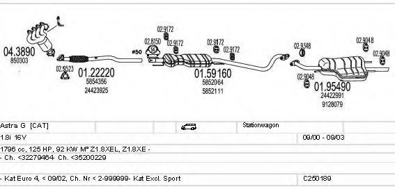 Глушитель в сборе для OPEL ASTRA G универсал (F35_) 1.8 16V