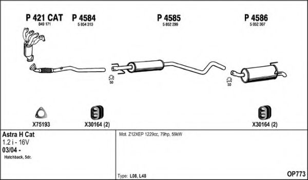 Глушитель в сборе для OPEL ASTRA H (L48) 1.2