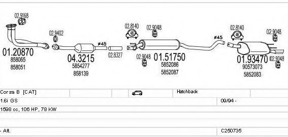 Глушитель в сборе для OPEL CORSA B (73_, 78_, 79_) 1.6 i 16V