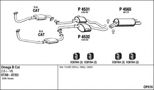 Глушитель в сборе для OPEL OMEGA B универсал (21_, 22_, 23_) 2.6 V6