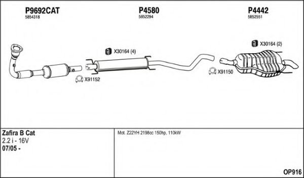 Глушитель в сборе для OPEL ZAFIRA B (A05) 2.2