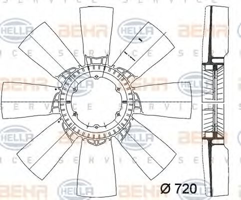 Крыльчатка вентилятора, охлаждение двигателя HELLA 8MV 376 757-421
