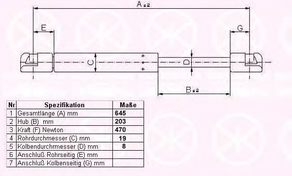 Газовая пружина, крышка багажник KLOKKERHOLM 50327101