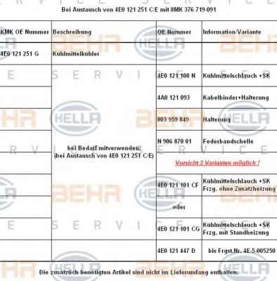 дополнительно необходимые артикулы (номер артикула) | 4E0 121 101CF/CG |