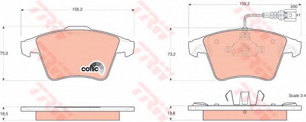 Комплект тормозных колодок, дисковый тормоз TRW GDB1555