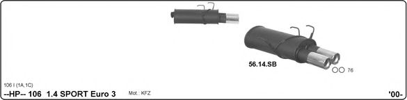 Глушитель для спортивного автомобиля для PEUGEOT 106 I (1A, 1C) 1.4