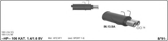 Глушитель для спортивного автомобиля для PEUGEOT 106 I (1A, 1C) 1.6