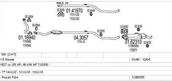 Глушитель в сборе для PEUGEOT 106 II (1) 1.5 D