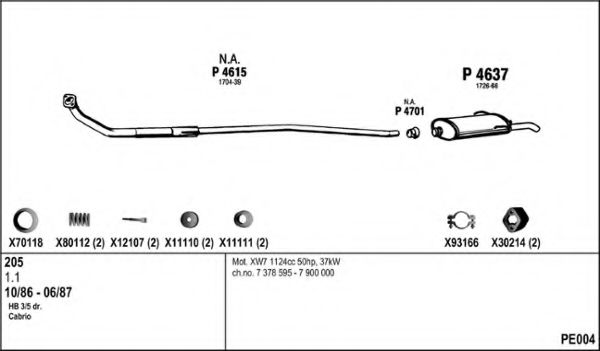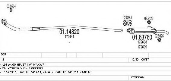 Глушитель в сборе для PEUGEOT 205 I (741A/C) 1.1