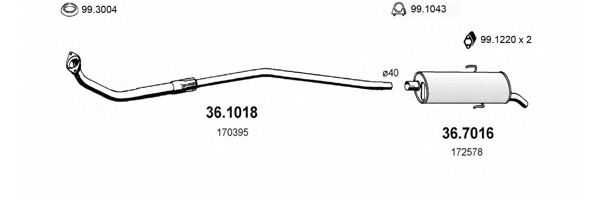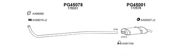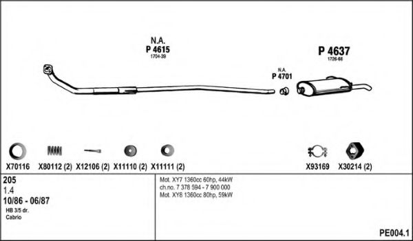 Глушитель в сборе для PEUGEOT 205 I (741A/C) 1.4