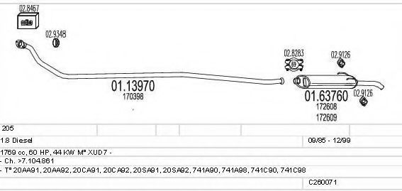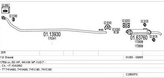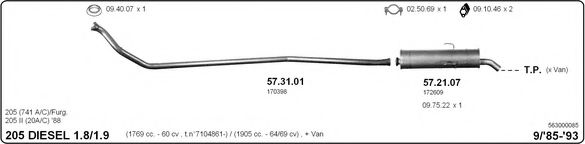 Глушитель в сборе для PEUGEOT 205 I (741A/C) 1.7 Diesel