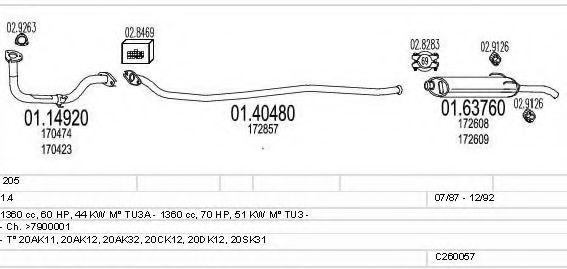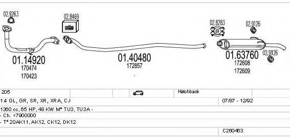 Глушитель в сборе для PEUGEOT 205 II (20A/C) 1.4