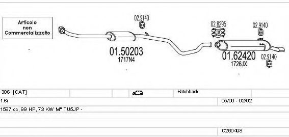 Глушитель в сборе для PEUGEOT 306 (7B, N3, N5) 1.6