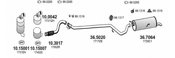 Глушитель в сборе для PEUGEOT 307 SW (3H) 1.6 HDI 110