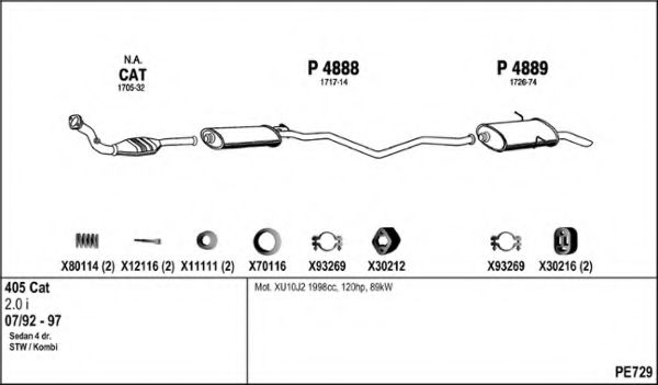 Глушитель в сборе для PEUGEOT 405 II Break (4E) 2.0