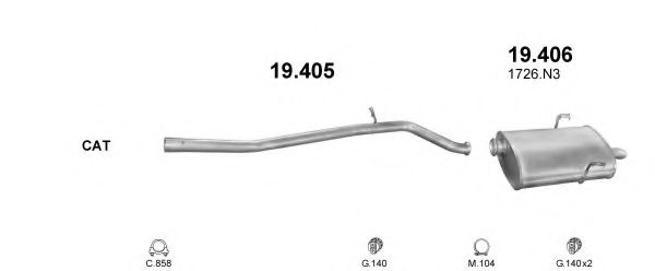 Глушитель в сборе для PEUGEOT 406 (8B) 1.9 D