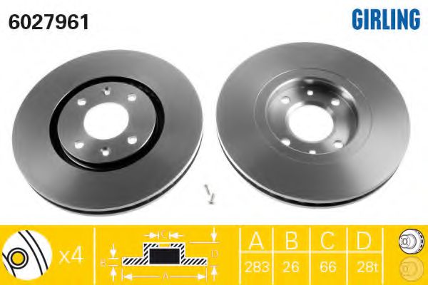 Толщина тормозного диска (мм) : 28