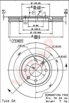 Тип тормозного диска : полный