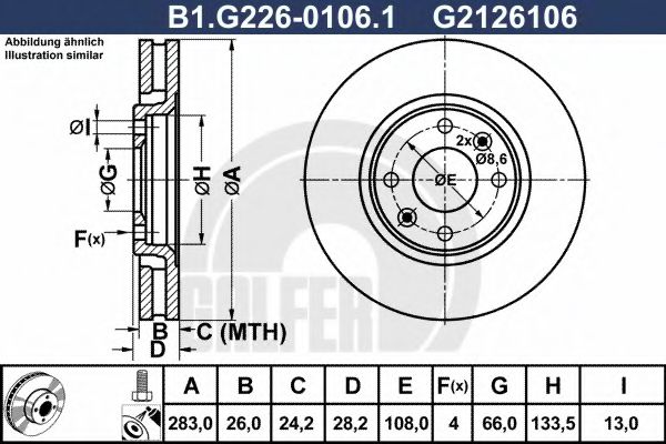 для тормозного диска диаметром [мм] : 283