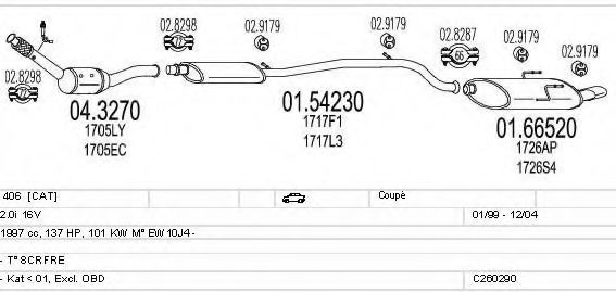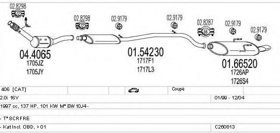 Глушитель в сборе для PEUGEOT 406 купе (8C) 2.0 16V