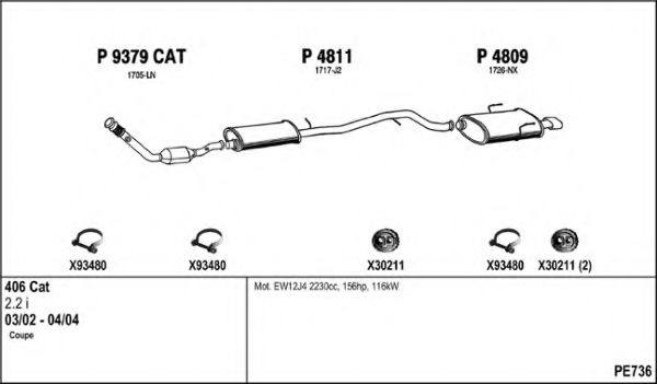 Глушитель в сборе для PEUGEOT 406 купе (8C) 2.2