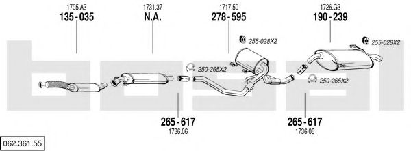 Глушитель в сборе для PEUGEOT 605 (6B) 2.5 Turbo Diesel