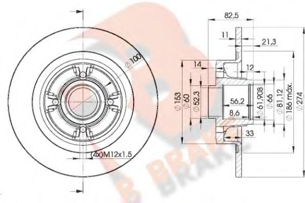 Диаметр [мм] : 274 Диаметр центрирования [мм] : 66 для тормозного диска толщиной [мм] : 11 Показать больше свойств