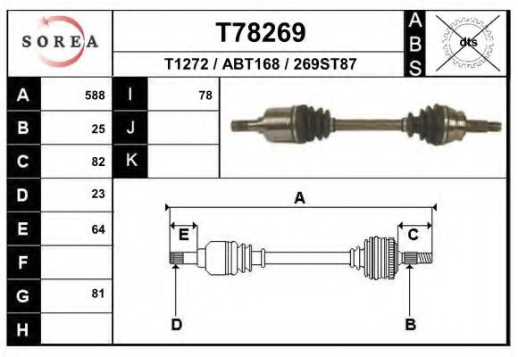 Внешнее зацепление со стороны дифференциала : 22 Динамика тормоза / движения : не для ABS Длина [мм] : 815 Показать больше свойств