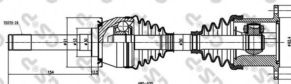 Внешнее зацепление со стороны колеса : 28диаметр 2 (мм) : 90Диаметр прокладки [мм] : 53Длина [мм] : 480Сторона установки : Передний мост